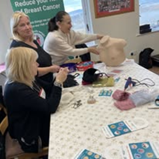 She brought a mannequin which enabled those present to feel a breast lump and learn how to check themselves for lumps. Lucy also showed the women how to measure their bra size as many of our team had noted that bra fitting was not something they had ever done. Over lunch and creative activity, we shared our fears and experiences of breast cancer while at the same time increasing our knowledge and awareness of the signs and symptoms of breast cancer.